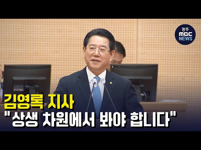 (앵커) 광주군공항 이전이라는 지역 최대 난제를 놓고 요즘 김영록 전남지사와 강기정 광주시장의 말 한마디 한마디가 주목받고 있습니다. 이런 가운데 오늘(11) 도정질문 답변에 나선 김영록 지사가 광주군공항 문제는 상생차원에서 봐야 한다며 다시 한 번 광주시와의 상생을 강조했습니다. 김영창 기자가 보도합니다. (...