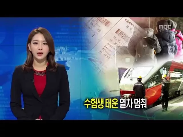 (앵커) 오늘 (15) 광주에서 서울로 가던 새마을호 열차가 멈춰 안에 타고 있던 수험생들의 발이 묶였습니다. 최소한 수험생 3명이 결국 대입 논술고사를 치르지 못한 것으로 알려졌습니다. 김인정 기잡니다. (기자) 오늘 오전 11시 25분쯤, 광주를 출발해 용산으로 가던 새마을호 열차가 대전 신탄진역 부근에서 보조 전원...