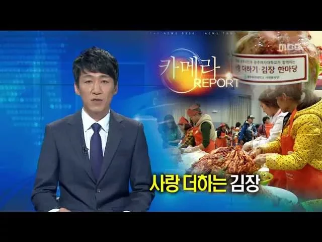 (앵커)카메라 기자의 시선으로우리 이웃들의 이야기를 담는 카메라 리포트입니다. 오늘은 다문화 가족과 함께 김치를 담그며 하나되는 모습을 앵글에 담았습니다. 윤순진 카메라 기자가 취재했습니다. (영상) *사랑 더하기 김장 한마당*-광주여자대학교- 박향기/광주여대 식품영양학과 *한국의 맛 배워갑니다* 영상취재 윤...