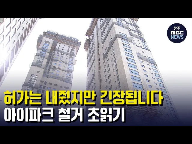 (앵커) 전세계에서 한 번도 시도해본 적 없는 아파트 전체 철거가 광주에서 시작됩니다. 공사를 관리 감독하는 해당 자치구도 철거 과정에서 또 다른 안전사고가 일어날지 몰라 긴장의 끈을 놓지 않고 있습니다. 임지은 기자의 보돕니다. (기자) 와이어에 묶인 타워크레인 자재가 아이파크 아파트 공사현장으로 옮겨집니다....