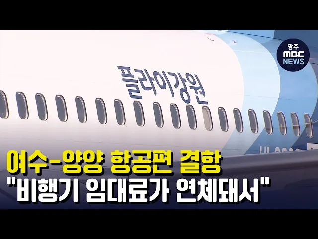 (앵커) 어제(24일) 여수를 출발해 강원도 양양으로 향하는 비행기 노선이 갑자기 결항돼 승객들이 큰 불편을 겪었습니다. 플라이강원의 비행기 임대료 연체 때문에 벌어진 일인데, 승객들은 제대로 된 안내도 받지 못한 채 비행기 대신 버스에 몸을 실었습니다. 보도에 김단비 기자입니다. (기자) 여수공항 내 플라이강원 ...