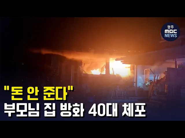 (앵커)부모와 다투던 끝에 부모의 집에 불을 지르고 달아났던 40대가 경찰에 붙잡혔습니다. 부모가 돈을 빌려주지 않는다며 범행을 벌였습니다. 박종호 기자가 취재했습니다. (기자)새카만 밤, 주택이 불길에 휩쌓였습니다. 어젯밤 10시 20분쯤 전남 장흥군 장흥읍의 한 주택에서 불이 났습니다. 평소 부모에게 의지에 살았...