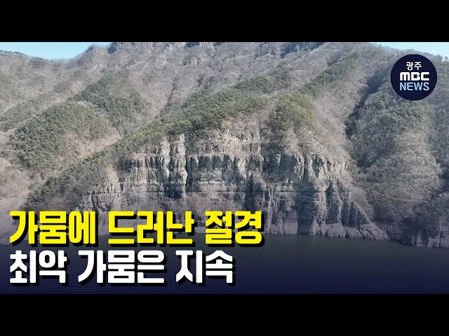 (앵커)화순의 대표적인 관광명소인 '화순 적벽'이 최근 가뭄으로 인해 수위가 내려가면서 오랫 동안 볼 수 없었던 수면 속 모습까지 드러냈습니다. 기암절벽의 수려한 경관을 가뭄 때문에 볼 수 있는 역설적인 상황인데요. 이런 가운데 올 봄에도 비가 많이 내리지 않을 것으로 예상되고 있어 제한 급수 우려가 커지고 있습...