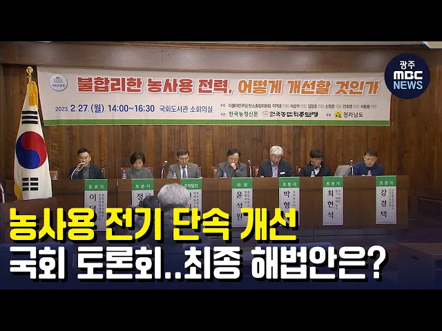 (앵커) 한국전력의 기준없는 농사용 전기 단속의 개선안을 찾는 국회 토론회가 열렸는데 그야말로 농민들의 한전 성토장이었습니다. 정부와 한전은 농사용전기 정책을 다시 합리적으로 마련하겠다고 말했습니다. 임지은 기자입니다. (기자) 국회를 찾은 농민들은 한국전력이 농업현실을 전혀 모르고 있다고 비판을 쏟아냈습...