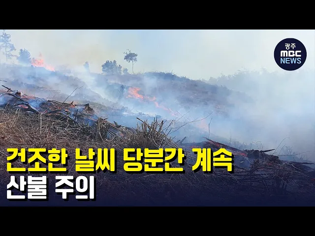 (앵커) 건조한 날씨에 산불이 잇따르고 있습니다. 바람도 많이 부는 요즘 같은 날씨가 계속되면 대형산불이 날 수도 있습니다. 김초롱 기자의 보도입니다. (기자) 산자락을 따라 뿌연 연기가 치솟습니다. 26일 오후 1시 반쯤 화순군 이양면의 한 야산에서 산불이 일어나 산림 5천㎡가 탔습니다. 밭두렁에서 쓰레기를 태우다...