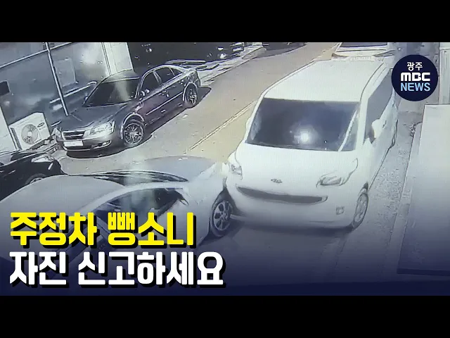 (앵커) 전남지역 교통사고 신고 건수 가운데 3분의 1은 '주정차 뺑소니'라고 합니다. 해마다 관련 신고 건수가 증가하고 있는데요. 경찰이 '주정차 뺑소니' 강력 단속과 함께 자진신고 홍보에 나섰습니다. 박종호 기자가 보도합니다. (기자) 목포의 한 주차장. 대형 버스가 후진을 하더니 주차된 차량을 부딪힙니다. 하지만...