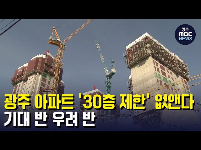 (앵커) 민선7기 광주시가 도심 난개발을 막기 위해 아파트는 30층, 주상복합은 40층으로 층수제한을 해왔는데 올해 봄부터 이게 폐지됩니다. 획일적인 도시 경관에 활력을 불어넣을 것이라는 기대감과 함께 난개발 우려가 동시에 나옵니다. 주현정기자입니다. (기자) 광주 첨단지구의 한 주상복합 건설현장입니다. 당초 사...