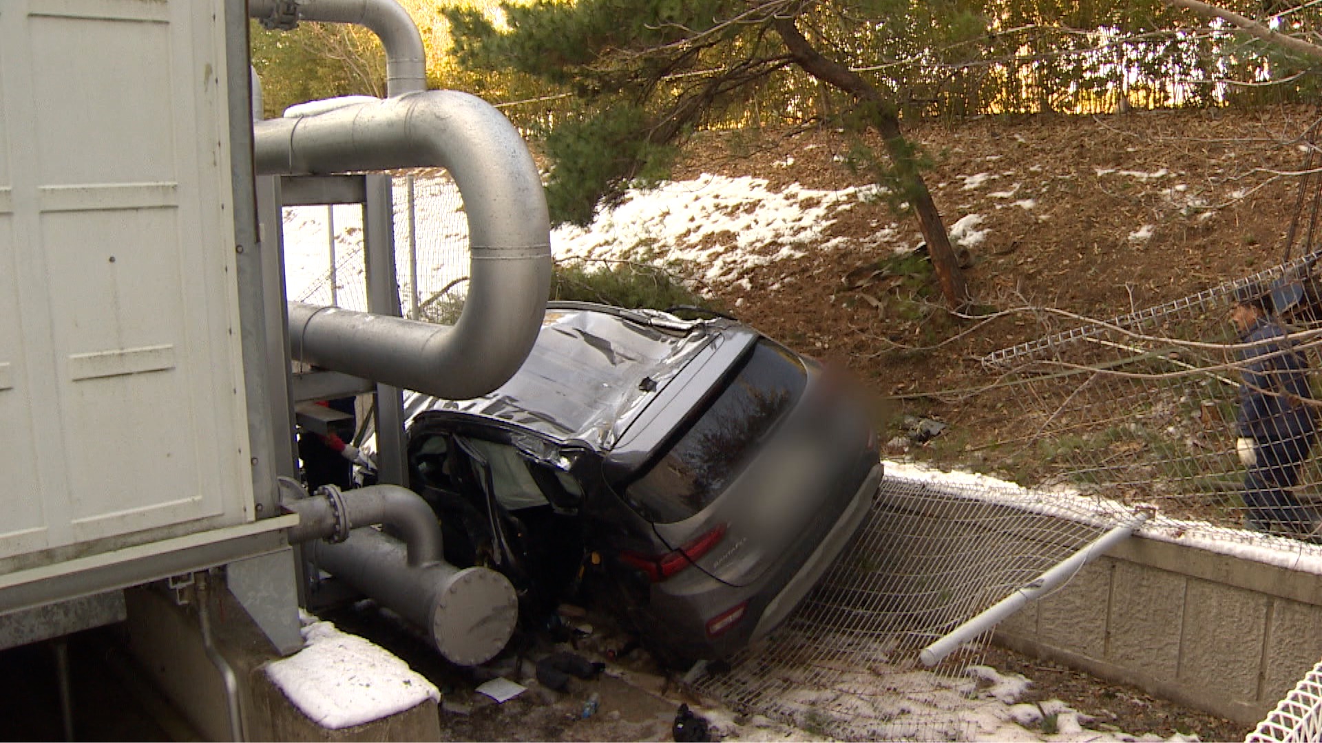 광주시청사 울타리 뚫고 떨어진 SUV..운전자 도주