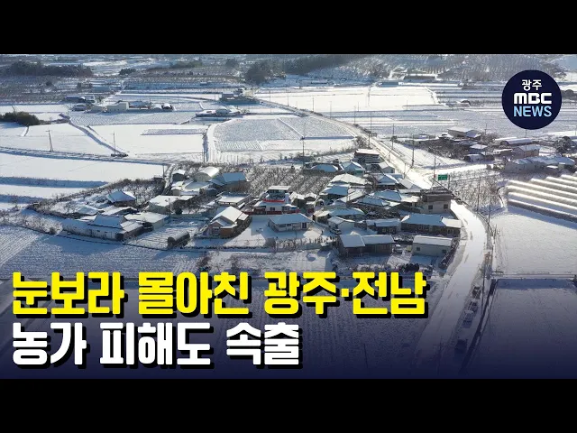 (앵커) 이틀째 눈보라가 몰아친 광주*전남 지역에선 도로 곳곳이 빙판길로 변했습니다. 가뜩이나 어려운 요즘, 농민들은 시설하우스 운영과 농작물 재배에 큰 피해가 가진 않을지 걱정이 더 커지고 있습니다. 임지은 기자가 폭설 피해 현장을 다녀왔습니다. (기자)이틀째 내린 폭설로 도심 도로와 차량이 모두 눈에 뒤덮였...