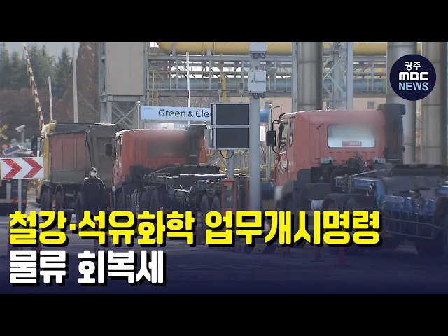 (앵커)화물연대 총파업 보름째인 오늘(8) 정부가 철강과 석유화학 운수 노동자를 대상으로, 업무개시명령을 내렸습니다. 두 업종이 밀집한, 광양제철소와 여수산단에서는 물류 흐름이 점점 나아지고 있습니다. 유민호 기자입니다. (기자) 포스코 광양제철소 안으로 화물차들이 줄지어 들어갑니다. 둥글게 말린 철강 제품을 ...
