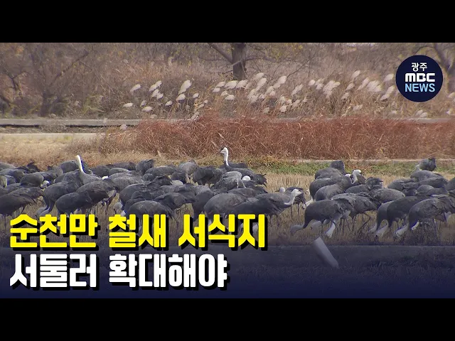 (앵커) 순천만 습지를 찾는 천연기념물, 흑두루미의 월동 개체수가 급증하고 있습니다. 순천만의 생태환경이 개선된 이유도 있겠지만, 최근, 일본 이즈미시의 AI확산 여파도 큰 것으로 보여, 순천만도 흑두루미 서식밀도를 낮추기 위한 노력이 당장 시급한 과제가 되고 있습니다. 최우식 기자가 보도합니다.(기자)순천만 입...