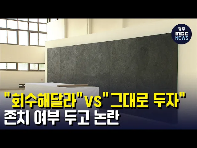 (앵커) 5.18 민주화운동 최후 항쟁지였던 옛 전남도청 복원 사업 과정에서 한 미술 작품의 존치 여부를 두고 논란이 계속되고 있습니다. 몇 해 전 상무관에 미술 작품이 전시됐는데, 전시 기간이 끝났으니 옮겨야 한다는 입장과, 그대로 둬야한다는 주장이 맞서고 있습니다. 보도에 이다현 기자입니다. (기자) 1980년 당시 ...