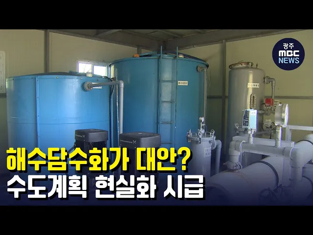 (앵커) 광주의 식수난이 날이 갈수록 심각해지고 있는 가운데 전남 섬지역은 형편이 더 좋지 않습니다. 급수문제로 고통받고 있는 섬지역에 해수담수화 설비가 잇따라 들어서고 있습니다. 하지만 해수담수화 설비가 안정적인 용수 공급을 책임질 수는 없어서 국가 수도계획의 현실화가 선행돼야 한다는 지적입니다. 신광하...