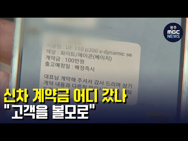 (앵커)광주 한 수입차 판매 대리점이 돌연 영업을 중단하면서 소비자들이 계약금을 못 돌려받는 일이 발생했습니다. 소비자들은 대리점과 연락이 끊겨 어떤 영문인지도 몰라 답답해 하고 있습니다. 임지은 기자가 취재했습니다. (기자) 장 모 씨는 지난 2월 광주 한 수입차 판매 대리점에서 SUV 차량을 사려고 계약금으로 1...