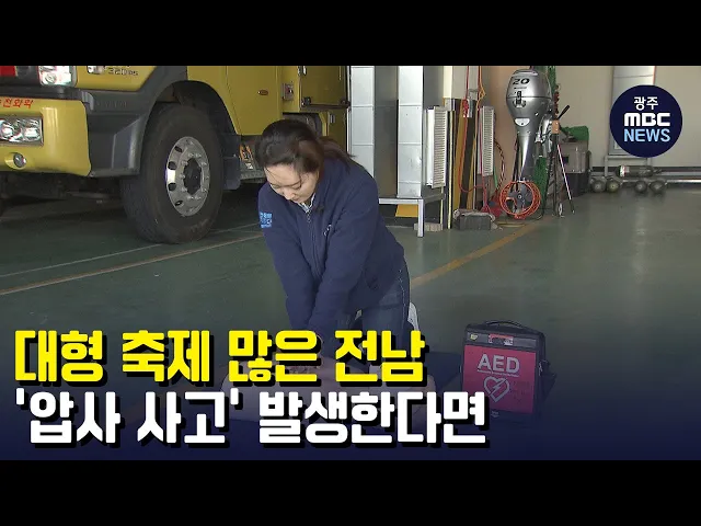 (앵커) 광주전남 지역에서도 대형 행사가 해마다 개최되는 만큼 비슷한 사고 위험에 항상 노출돼 있다는 지적이 제기됐습니다. 하지만 지역의 응급의료 인프라가 턱없이 부족한데다 시민들의 심폐소생술에 의존하는 것도 쉽지 않아 대책이 필요하다는 목소리가 나옵니다. 강서영 기자입니다. (기자)10만여 명의 인파가 한꺼...