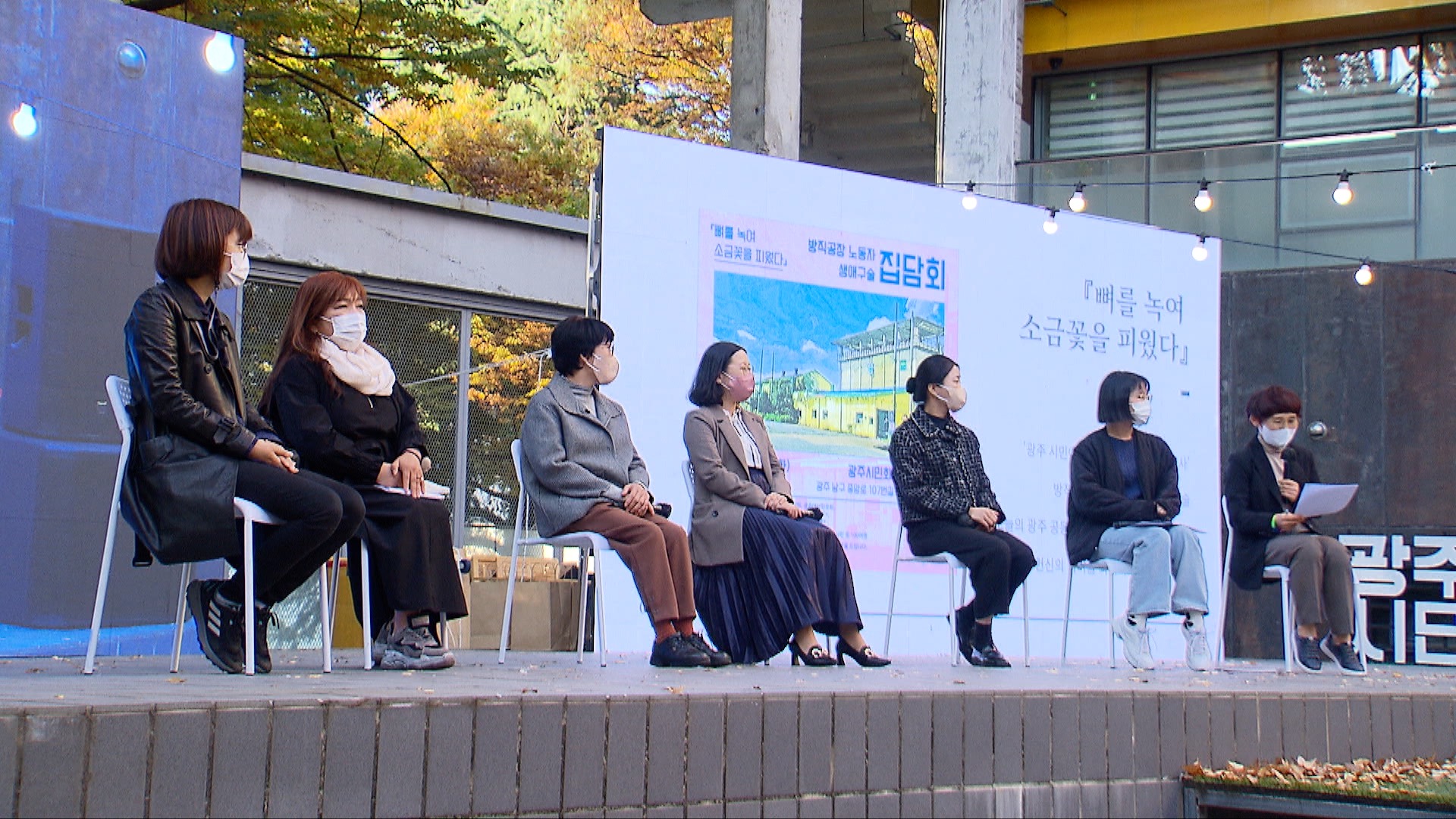 광주 근대화 상징인 방직공장 노동자들의 일과과 체조로 선보여졌습니다. 광주여성민우회는 오늘(25) 방직공장 노동자들의 집담회를 열고 출근부터 일터에서의 노동까지 일과를 16개 동작으로 표현한 창작 체조를 선보였습니다. 이날 집담회는 방직공장 노동자들의 삶을 엮어낸 책 '뼈를 녹여 소금꽃을 피웠다'의 출간도 기...
