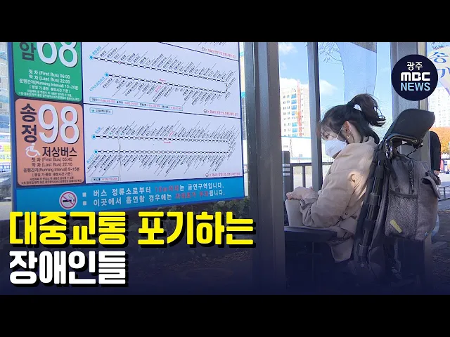 (앵커)휠체어를 타는 장애인들에게 대중교통은 너무도 높은 문턱입니다. 저상버스만 이용할 수 있는데 광주에는 저상버스가 부족하기 때문입니다. 임지은 기자가 장애인과 함께 저상버스 이용 현실을 알아봤습니다. (기자) 휠체어를 타는 김민정 씨가 집으로 가기 위해 일터를 나섰습니다. 공사 현장 펜스가 쳐져 좁고 울퉁...
