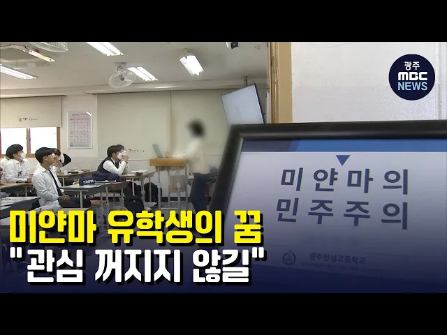(앵커) 지난해 2월 군부 쿠데타가 벌어진 미얀마의 한국 대사관 앞에서 한국어로 '도와달라'고 시위했던 대학생을 기억하십니까. 이후 광주에 들어와 지내던 이 대학생이 최근 고등학교 교단에 섰다고 합니다. 광주의 학생들에게 어떤 이야기를 전했는지, 이다현 기자가 들어봤습니다. (기자) "우리는 지금 밤마다 무서워하...