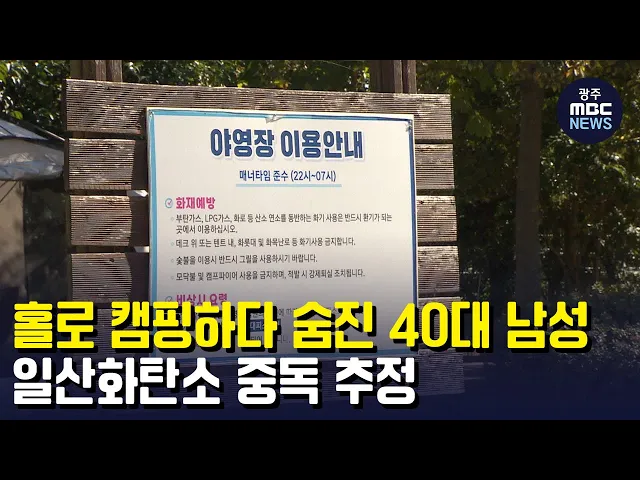 (앵커) 혼자 캠핑을 하던 남성이 텐트 안에서 숨진 채 발견됐습니다. 음식 조리를 위해 번개탄을 피워둔 채 잠이 들면서 숨진 것으로 추정되는데요. 추워진 날씨에 난방기구와 취사기구를 밀폐된 공간에서 사용하면 위험할 수 있어 주의가 필요합니다. 임지은 기자의 보돕니다. (기자)광주 한 캠핑장에서 40대 남성이 텐트 ...