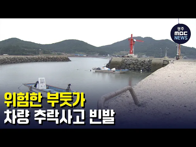 (앵커) 부둣가에서 차량이 바다에 빠지는 사고가 끊이지 않고 있습니다. 늘상 차량 통행이 이뤄지지만, 항만시설이란 이유로 변변한 안전시설조차 설치되지 못하고 있습니다. 박종호 기자입니다. (기자)완도의 한 선착장 콘크리트 구조물 모퉁이가 부서져 있고, 갯벌에는 차량 부품이 남아있습니다. 지난 24일, 이 마을에 ...