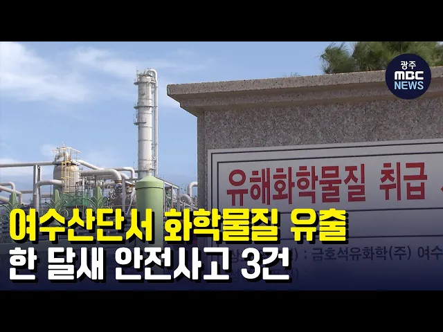 (앵커)여수산단 내 한 공장에서 화학물질이 유출돼 근처에서 작업을 하던 노동자들이 병원으로 이송됐습니다. 한 달 사이 여수산단에서 비슷한 사고가 연이어 발생하면서 대책을 요구하는 목소리가 높아지고 있습니다. 보도에 김단비 기자입니다. (기자) 여수산단 내 금호석유화학 고무 2공장입니다. 오늘(22) 오전 10시 45...