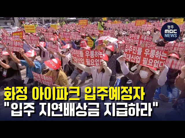 (앵커) 붕괴사고로 입주가 지연된 화정 아이파크 아파트 분양 주민들이 대규모 상경 집회를 벌였습니다. 집회 참석자들은 현대산업개발이 내놓은 주거 대책이 '허울'뿐이라며, 입주 지연배상금 지급 약속을 지키라고 촉구했습니다. 임지은 기자의 보돕니다. (기자) 손팻말을 든 광주 화정 아이파크 분양 주민 수백 명이 서...