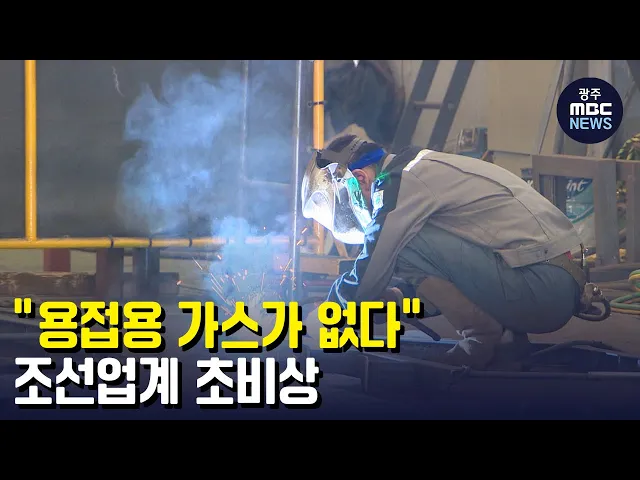 (앵커)액화탄산가스의 시장 공급량이 줄면서 조선업계에 불똥이 튀고 있습니다. 선박 용접을 할 가스를 구하기조차 어려워지는 건데, 당장 이렇다할 대책을 마련하기도 쉽지 않은 상황입니다. 박종호 기자가 취재했습니다. (기자) 대불국가산업단지의 한 선박 의장품 제조업체. 한창 용접 불꽃이 튀어야 할 때인데, 한산하...