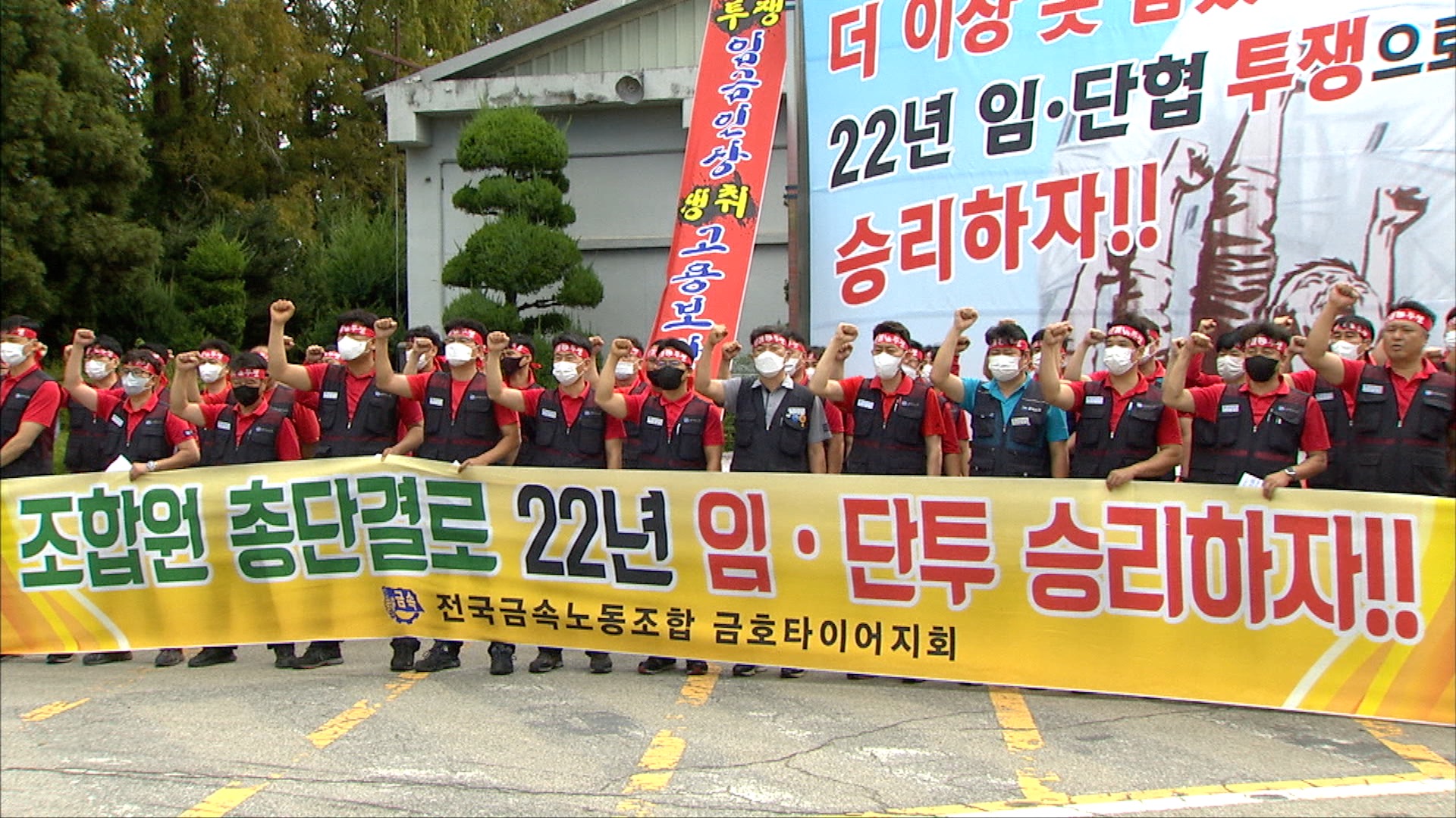 금호타이어 노사가 임금 등 단체협약을 두고 합의점을 찾지 못해 노조가 쟁의행위 찬반 투표에 나섰습니다. 금호타이어 노조는 금호타이어 공장 앞에서 기자회견을 열고 지난 4년간 경영 정상화를 이유로 상여금을 반납하는 등 고통을 감내했지만 임단협이 결렬됐다며 오는 21일부터 쟁의행위에 대한 투표를 진행한다고 밝...