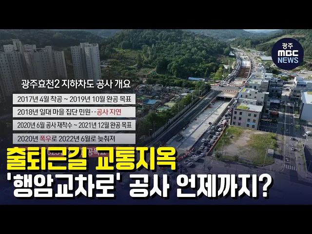 (앵커) 광주와 나주를 연결하는 관문쪽인 남구 행암교차로가 벌써 수년째 교통지옥이 돼 있습니다. 효천 지하차도 공사가 기한을 지키지 못한 채 지연되면서 출퇴근길 시민들이 극심한 고통을 호소하고있는데요, 내년 4월까지로 정해진 공사 기한이 이번엔 잘 지켜질 지, 여전히 걱정입니다. 김영창 기자의 보돕니다. (기자...