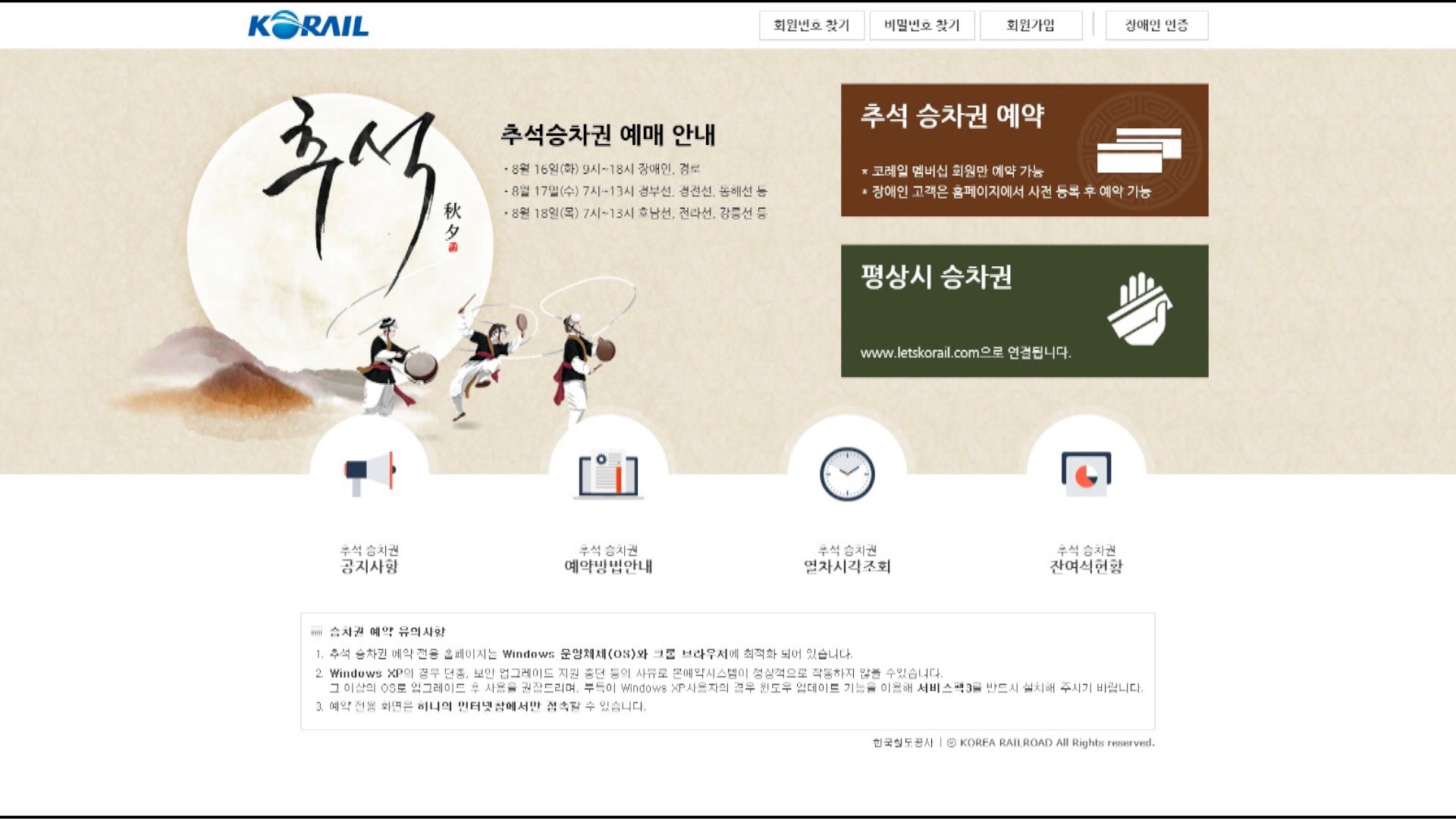 올해 추석 기차 승차권 예매는 코로나19 확산을 막기 위해 현장 판매를 중단하고 온라인과 전화 등 100% 비대면 방식으로 진행됩니다. 코레일은 온라인 예매를 명절 승차권 예매 전용 홈페이지에서 호남선은 18일 실시하고 SRT는 25일 호남선 예매를 한다고 밝혔습니다.