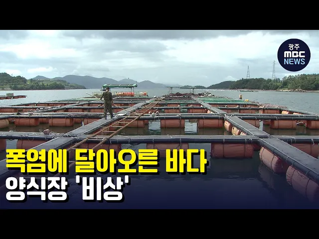 (앵커)30도를 웃도는 무더위에 바다도 달아오르고 있습니다.바다 수온에 민감한 가두리 양식장은 그야말로 비상인데요.아직까지 고수온 피해는 없어 다행인데,다음주까지 폭염이 이어질 것으로 예보돼 주의가 요구됩니다.김단비 기자입니다.(기자)여수시 월호동 인근의 한 가두리 양식장.종일 산소 공급장치를 가동하고 있...