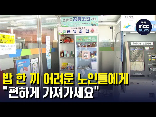(앵커) 밥상 물가가 치솟으면서 홀몸노인이나 저소득층 어르신들의 한 끼가 더욱 팍팍해지고 있죠. 이 분들을 위해 물품을 기부할 수 있는 '마을 곳간'을 주민들이 설치했는데, 선한 마음이 모이고 있습니다. 임지은 기자가 취재했습니다. (기자) 광주 광산구 송정1동 행정복지센터 앞에 커다란 냉장고가 놓여있습니다. 손...