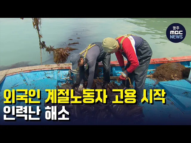 (앵커) 코로나 19로 중단됐던 외국인 계절 노동자 고용이 시작돼 농어촌의 인력난을 덜어주고 있습니다. 그러나 5개월 한시적인 고용 형태에 머물러 농어가의 근본적인 인력난을 해소하는데는 한계가 있습니다. 신광하 기자가 보도합니다.(기자) 전남 완도 앞바다의 다시마 양식장입니다. 여름 수확기를 맞아 전복 먹이용...