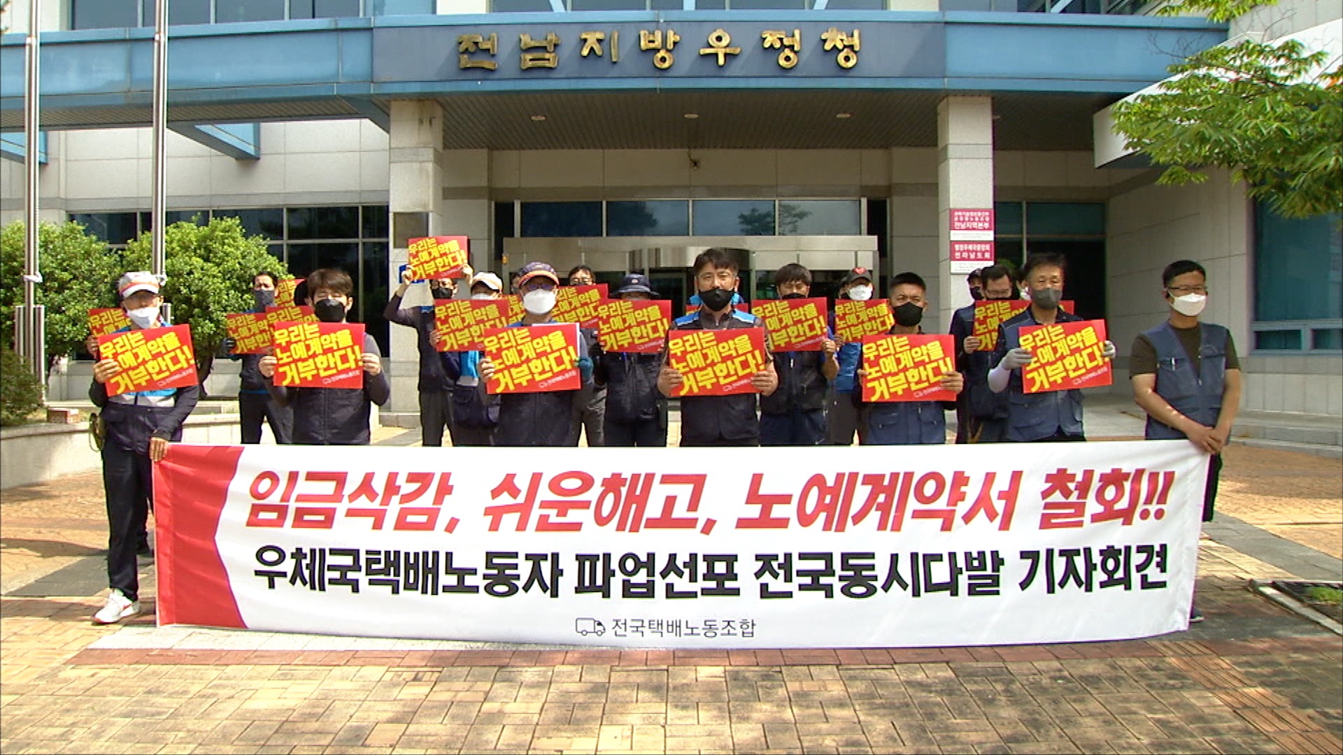 우체국 택배 노동자들이 위탁계약서 내용에 독소 조항이 포함됐다며 총파업을 예고했습니다. 전국택배노조 우체국본부 광주 노동자들은 기자회견을 열고 '특수고용 노동자의 계약을 2년마다 새로 하도록 한 우정사업본부의 계약서 내용은 쉬운 해고를 위한 노예 계약'이라고 비판했습니다. 이번 기자회견은 전국에서 동시에...