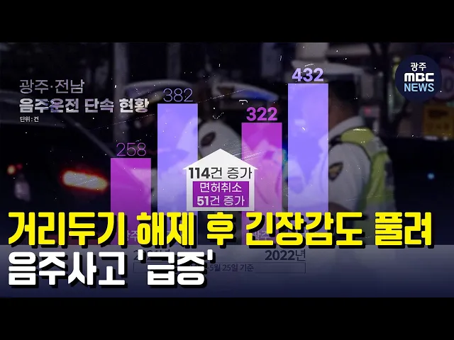 (앵커) 음주운전에 대한 인식이 나아졌다고는 하지만, 이번 한 번쯤이야 라는 생각으로 운전대를 잡는 사람들이 여전히 많습니다. 여기에 사회적 거리두기 해제로 경각심까지 풀리면서 밤낮을 가리지않고 음주운전 사고가 잇따르고 있습니다. 임지은 기자의 보도입니다. (기자) 출근 시간대 광주 광산구의 편도 3차선 도로...