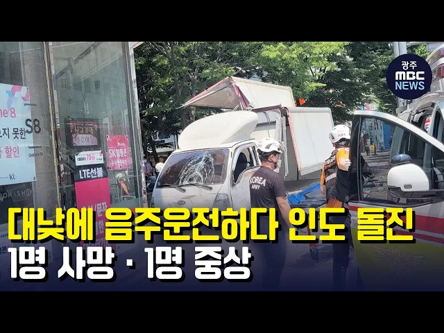 (앵커) 대낮에 음주 운전자가 몰던 화물차가 도롯가 인도로 돌진해 인명피해가 났습니다. 날벼락같은 사고로 자전거를 타고 있던 시민 한 명이 숨지고 보행자 한 명은 크게 다쳤습니다. 임지은 기자가 취재했습니다. (기자) 광주 동구의 왕복 4차선 도로. 화물차가 중심을 잃고 휘청휘청 거리더니 갑자기 속력을 내며 인도...