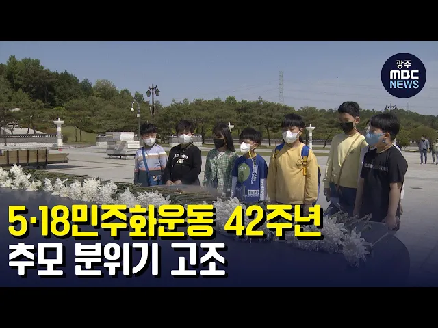 (앵커) 5.18 민주화운동 42주기를 앞두고 휴일을 맞은 도심 곳곳에서 추모 분위기가 고조됐습니다. 코로나가 잠잠해진 덕분에 올해는 작년보다 추모객이 크게 늘었습니다 조현성 기자입니다. (기자) 종일 참배객들의 행렬이 이어진 국립 5.18 묘지 추모탑 앞에는 헌화와 분향, 묵념을 하기위한 발길이 끊이지 않습니다. 고...