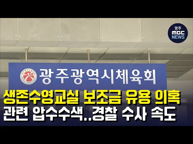 (앵커) 2019년 생존수영교실 사업을 추진하는 데 쓰인 광주시 보조금 가운데 일부가 유용됐다는 광주MBC 단독보도와 관련해 경찰이 압수수색에 나섰습니다. 경찰은 보조금이 목적대로 사용되지 않았을 가능성이 있다고 보고 정확한 경위를 조사하고 있습니다. 보도에 이다현 기자입니다. (기자) 지난 2019년 광주시수영연맹...