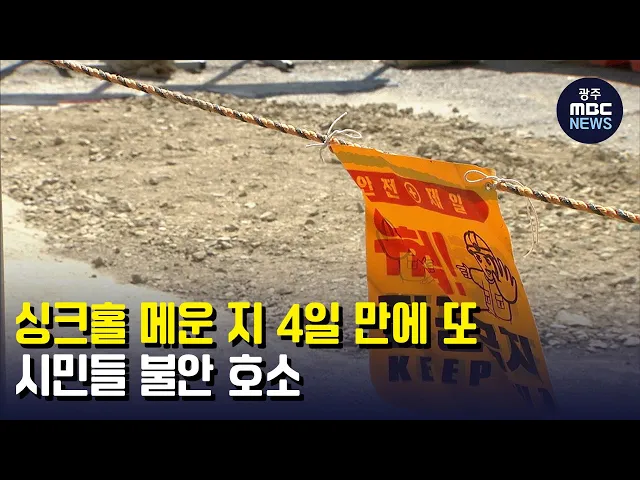 (앵커) 광주시내 도로 한복판에서 땅꺼짐 현상, 이른바 '씽크홀'이 연이어 발생했습니다. 공사장 주변이라 근처 주민들이 수시로 불안감을 호소했는데요. 일주일이 채 안 돼 비슷한 일이 되풀이됐습니다. 임지은 기자의 보돕니다. (기자) 지난 1일, 광주시 노대동의 한 교차로. 도로 한 가운데에 직경 1m 깊이 2m에 달하는 ...