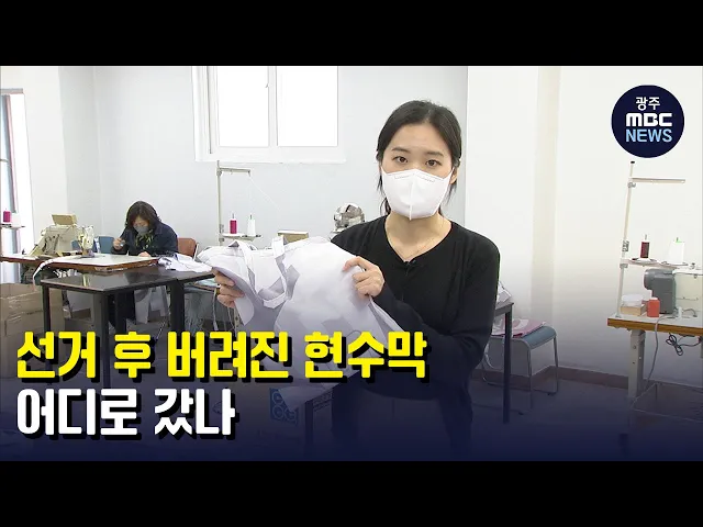 (앵커) 선거철이 끝나면 정당 후보별로 내걸렸던 현수막은 함부로 처리하기 힘든 천덕꾸러기가 됩니다. 지자체들이 나서 폐현수막을 재활용하기도 하지만 6월 지방선거를 앞두고 현수막이 더 늘어나 환경 오염을 부추길 것으로 전망됩니다. 임지은 기자가 취재했습니다. (기자) 자활근로 사업에 참여한 광주 북구 주민들이 ...