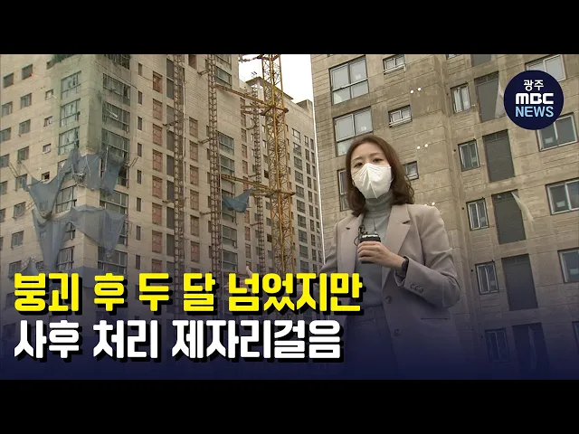 (앵커) 붕괴 사고가 난 현장이 정상적인 모습을 갖추기 까지 얼마나 많은 시간이 필요할지 가늠조차 힘든 상황입니다. 남아있는 건물을 어떻게 처리할지 결정이 되지 않아 피해 보상 협의도 계속 늦어지고 있습니다. 이다현 기자의 보도입니다. (기자)16개 층이 한꺼번에 무너져 내린 201동 건물이 흉물스럽게 서 있습니다....