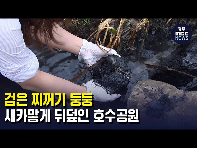 '검은 찌꺼기 둥둥'..새카맣게 뒤덮인 호수공원