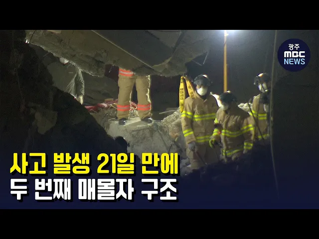 (앵커) 16개 층이 겹겹이 무너져내린 광주 아이파크 아파트 붕괴 사고 현장에서 오늘 두 번째 매몰자가 구조됐다는 소식이 들어왔습니다. 사고가 발생한지 21일째에 접어든 날입니다. 현장 취재 기자 연결해보겠습니다. 이다현 기자, 실종자가 발견됐다고요? (기자) 네, 오늘(31) 저녁 6시 25분쯤 붕괴 건물 28층에 매몰돼 ...