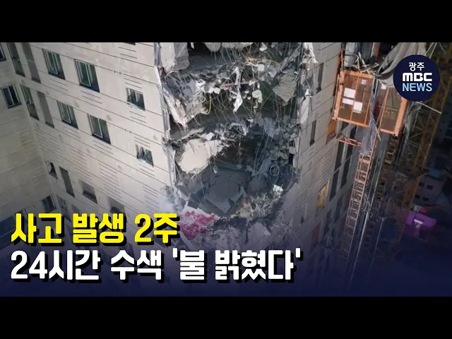 (앵커) 광주 아이파크 아파트에서 붕괴 사고가 난지 벌써 2주째를 맞고 있습니다. 타워 크레인이 해체된 이후 사고 현장에서는 실종자를 찾기 위한 수색 작업이 속도를 내고있는데요. 건물 상층부 수색 활동이 본격화되고 주간과 야간으로 나눠 하루 24시간 작업이 진행됩니다. 붕괴 사고 현장 상황을 임지은 기자가 취재했...