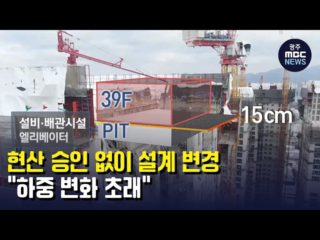 (앵커) 이번 사고에서 현대산업개발측이 관할구청의 승인없이 PIT층 즉, 배관 설비층의 천장이자 39층의 바닥 두께를 두배로 늘린 게 사고의 주요 요인으로 꼽히고 있는데요. 감리는 이 상층부 PIT층에 대해 위험성을 제기하고 안전관리를 철저히하라는 지시까지 내렸던 것으로 확인됐습니다. 김영창 기잡니다. (기자) 당초...