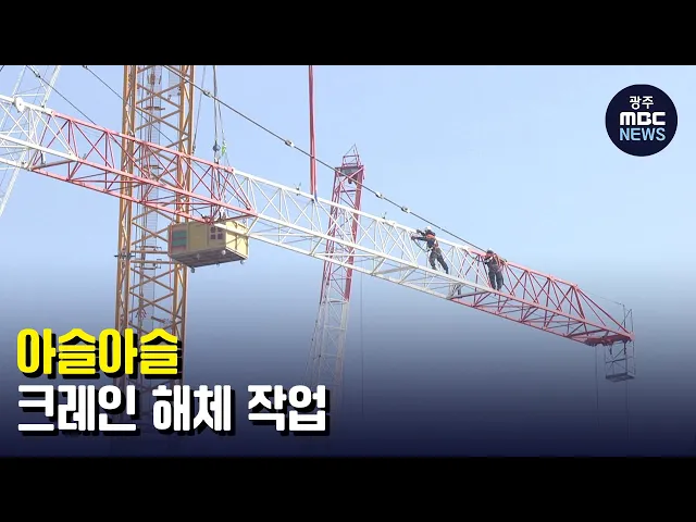 (앵커) 실종자 수색작업을 진행하는 데 있어 최대 걸림돌로 꼽혔던 타워 크레인 해체 작업이 시작됐습니다. 오늘 작업은 140미터 높이의 공중에서 진행됐을 뿐만 아니라, 크레인과 연결돼 있는 건물 외벽이 추락할 위험도 있어, 더욱 조심스럽게 진행됐습니다. 보도에 이다현 기자입니다. (기자) 타워크레인 해체 노동자들...