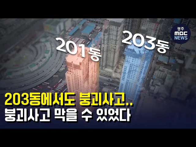 (앵커) 광주MBC는 이번 사고가 발생하기 한 달 전 사고가 난 201동과 바로 앞에 있는 203동에서도 붕괴사고가 있었다는 증언을 확보했습니다. 같은 규모와 높이의 다른 동에서 비슷한 사고가 있었던 건데, 현대산업개발이 이 때 제대로 대응했다면 이번 사고를 막을 수 있었다는 지적입니다. 송정근 기자의 보도입니다. (기...