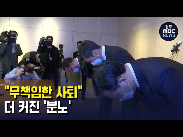 (앵커) 한편 현대산업개발 정몽규 회장이 회장직에서 물러나겠다고 밝혔는데요. 지역민들의 반응은 싸늘합니다. 회장직 사퇴는 책임 회피를 위한 거짓 쇼에 불과하다며, 진정성있게 책임지는 모습을 보이라고 촉구했습니다. 조현성 기자의 보돕니다. (기자) 사고 발생 엿새가 지나서야, 그것도 사고 현장이 아닌 자신들의 ...