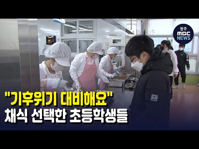 (앵커)건강상 이유 뿐만 아니라가축에서 나오는 탄소 배출을 우려해채식을 하는 사람들이 점차 늘고 있는데요.광양의 한 초등학교에서는기후위기를 걱정하는 초등학생들이 직접 채식 급식을 건의하고 실천하고 있습니다. 강서영 기자입니다.(기자)채식 급식의 날을 맞은 광양 옥룡초등학교의 점심시간입니다.카레에는 소고...