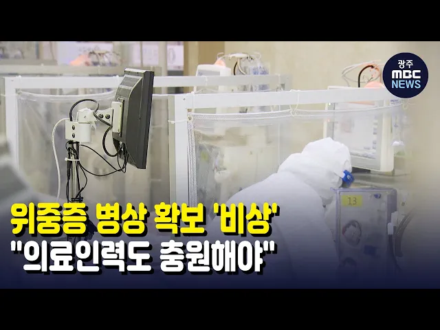 (앵커)광주*전남에서 일주일 넘게 하루 백명이 넘는 확진자가 나오면서중증 병상 확보에 비상이 걸렸습니다.광주*전남 방역당국은 이달까지 준중증병상 34곳을 마련한다는 계획인데,의료진을 중심으로는 인력이 준비되지 않았다는 목소리도 나오고 있습니다.우종훈 기자가 보도합니다.(기자)광주와 전남에서는 8일째 세자릿...